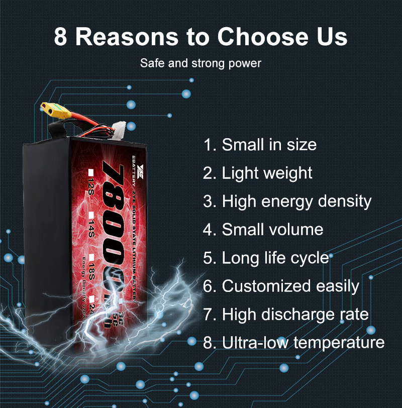 Baterai solid-state berkapasitas besar 78000mah kami dirancang untuk memenuhi permintaan yang terus meningkat akan sumber energi yang ringan, tahan lama, dan bertenaga. Mulai dari 850mAh hingga 302.000mAh, paket baterai kami memberikan kinerja tak tertandingi dengan pengisian daya ultra cepat dan tingkat pengosongan daya yang tinggi, menjadikannya ideal untuk ruang angkasa, UAV, peralatan medis, dan aplikasi industri.