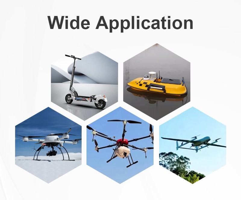 A: Mereka biasanya digunakan dalam drone, kendaraan RC, robot yang lebih besar, dan beberapa peralatan industri dan medis portabel yang membutuhkan tegangan dan daya yang lebih tinggi.